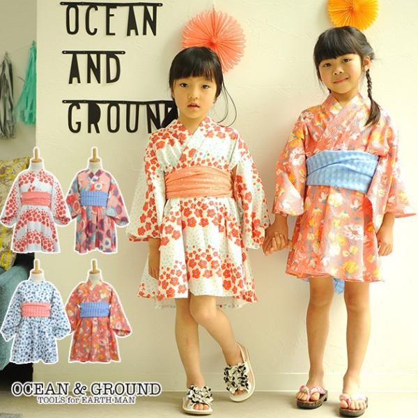 メール便不可 オーシャンアンドグラウンド 浴衣セットアップ Flower Mg キッズ ベビー トップス ユカタ ゆかた 女の子 花柄 簡単 子供服 Ocean Ground 公式 Marumiya World 本店